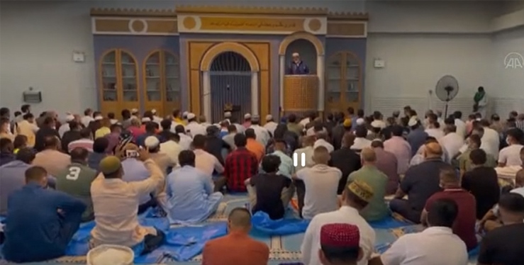 Yaklaşık 850 metrekare büyüklüğünde 350 kişi kapasiteli camide bir araya gelen Müslümanlar, bayram sevincini birlikte yaşadı. Namazın ardından cemaat için meyve suyu ve çocuklar için hediye dağıtıldı.