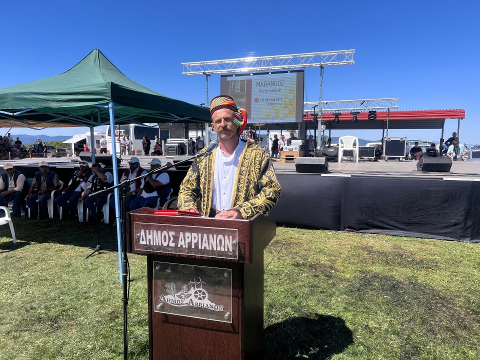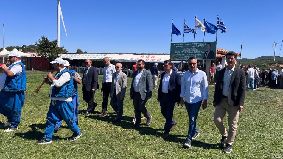 Değerli soydaşlarımız, Türkiye’den gelen belediye başkanlarımız ve belediye başkan vekillerimiz, sizlere Atina Büyükelçimiz sayın Çağatay Erciyes’in ve burada görev yapmanın önemini ve değerini çok iyi bilen Dışişleri Bakanlığımızın bütün fertlerinin selamlarını ileterek sözlerime başlamak istiyorum. Değerli soydaşlarımız kültürel faaliyetlerimiz, kimliğimizi, Türk kimliğini besleyen, bizi biz yapan, bağları güçlendiren çalışmalardır. Unutmayalım ki; kültürünü yaşatmayan toplumlar, köklerinden kopma tehlikesiyle karşı karşıya kalır. Bu nedenle kültürel faaliyetlere katılmak, onları desteklemek ve gelecek nesillere aktarmak, hepimizin ortak sorumluluğudur. Pehlivanlık kültürü Türk milletinin değerleri ile doğrudan ilişkilidir. Cesaret, yiğitlik, mertlik, doğruluk ve vefa bir pehlivanın sahip olması gereken başlıca özelliklerdir. Bu nedenle güreş sadece bir spor değil aynı zamanda genç nesillere iyi yaşamın öğretilmesinde bir okul gibidir. Sonuç olarak pehlivanlık, Türk kültürünün hem bedensel hem de manevi yönlerini temsil eden çok değerli bir mirastır. Bugün de bu mirası yaşatmak, hem geleneklerimize sahip çıkmak, hem de gençlerimizi doğru değerlerle büyütmek açısından büyük önem taşır. Bugün üç gündür devam eden bu faaliyetlerin düzenlenmesinde katkıda bulunan, organize eden ve katılımla sahip çıkan bütün soydaşlarımıza teşekkür ediyorum.”
