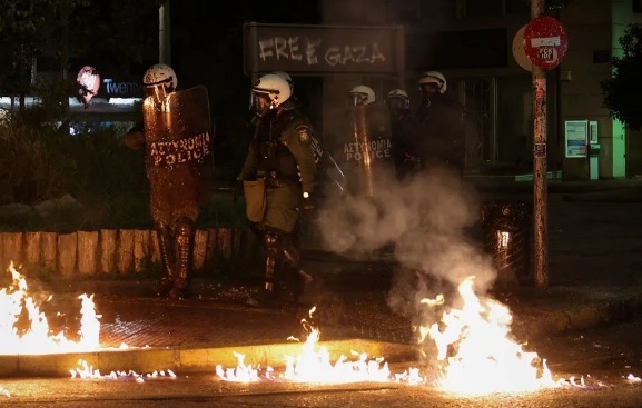 Atina’daki Filistin’e destek gösterisinde polis ile eylemciler arasında arbede yaşandı
