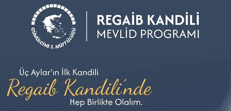 Gümülcine Müftülüğü Regaip Kandili dolayısıyla ‘Regaip Kandili Mevlid Programı’ düzenleyeceğini duyurdu.