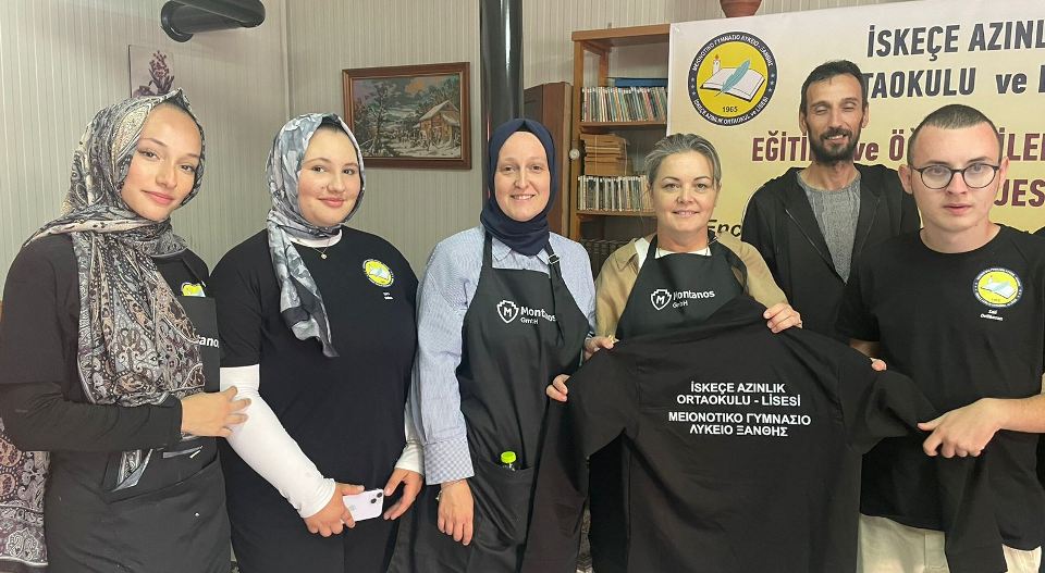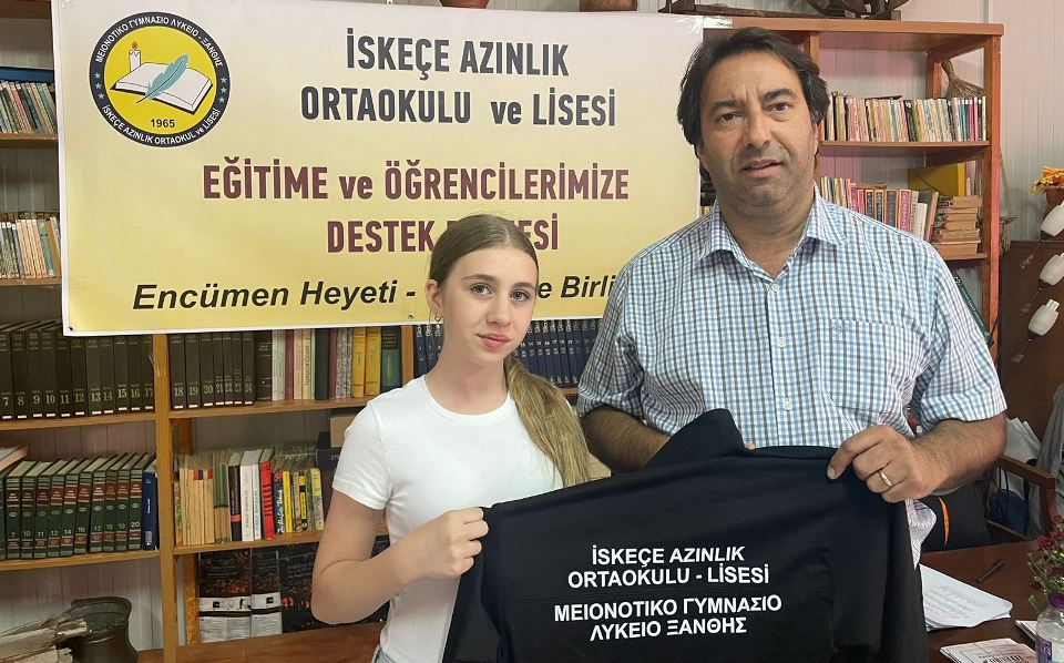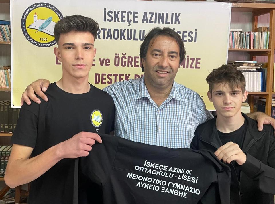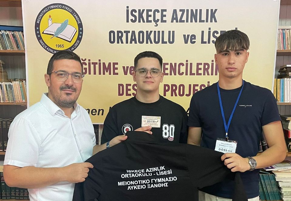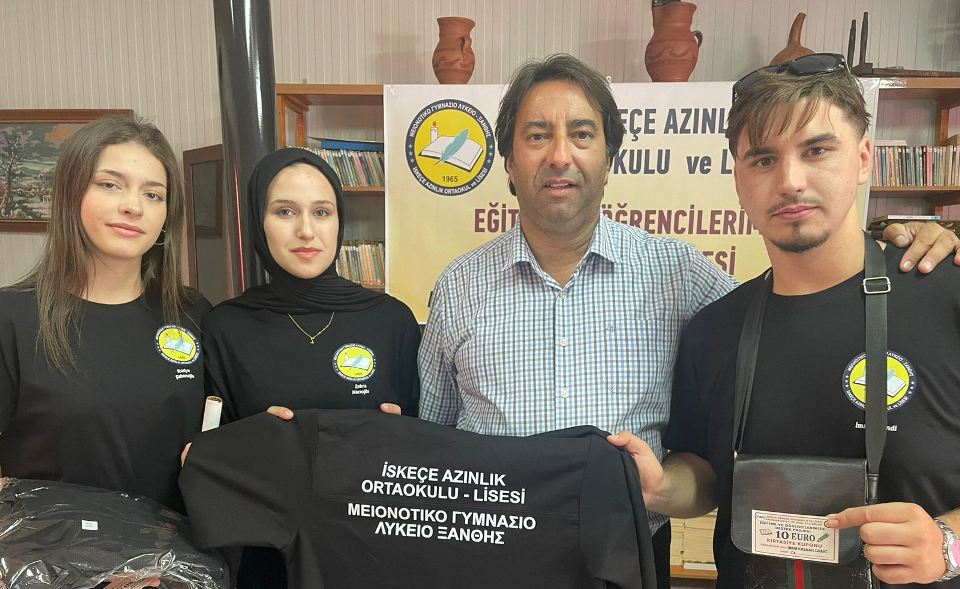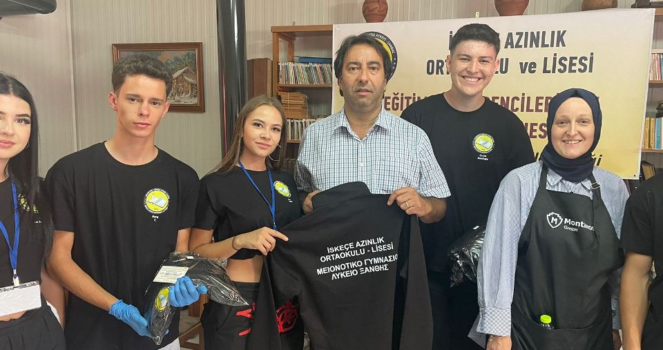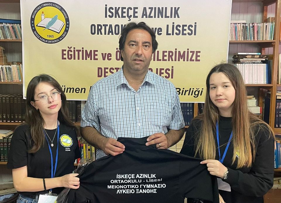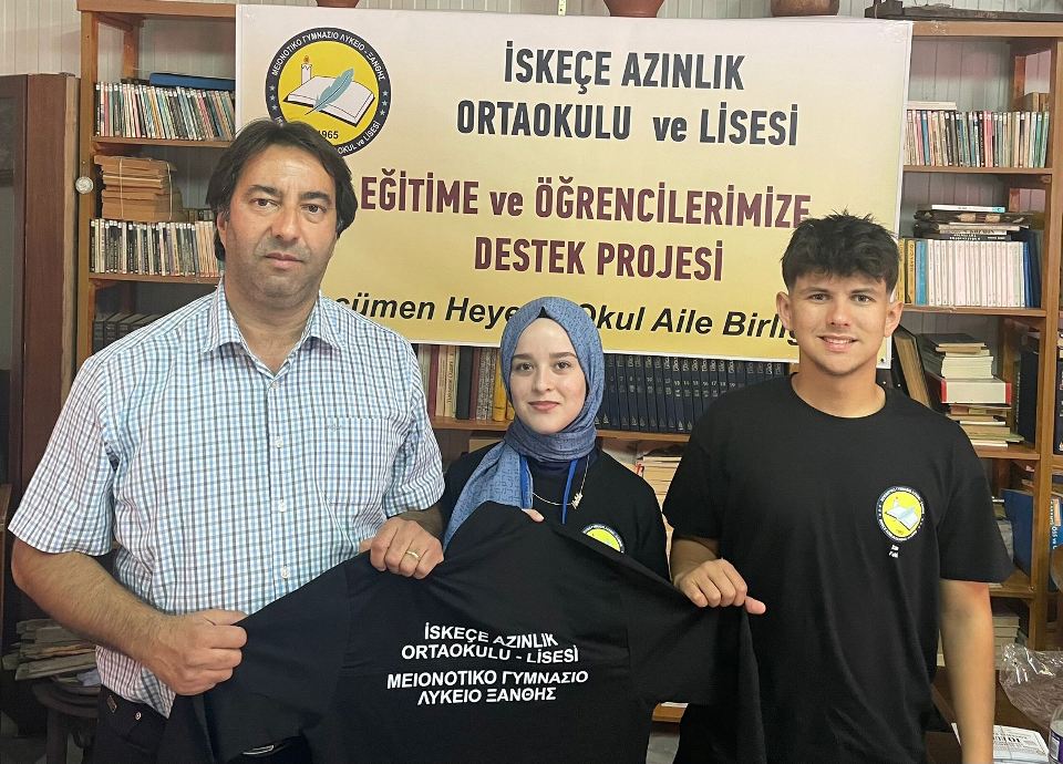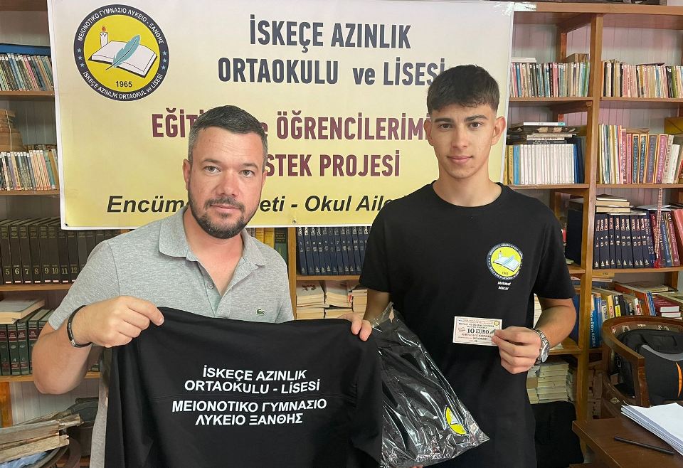 İlk etapta İskeçe Azınlık Ortaokulu – Lisesindeki tüm öğrencilere hediye edilecek Eşofman Takımı ve öğrenci başına 10 euroluk Kırtasiye Kuponu teslim edildi.