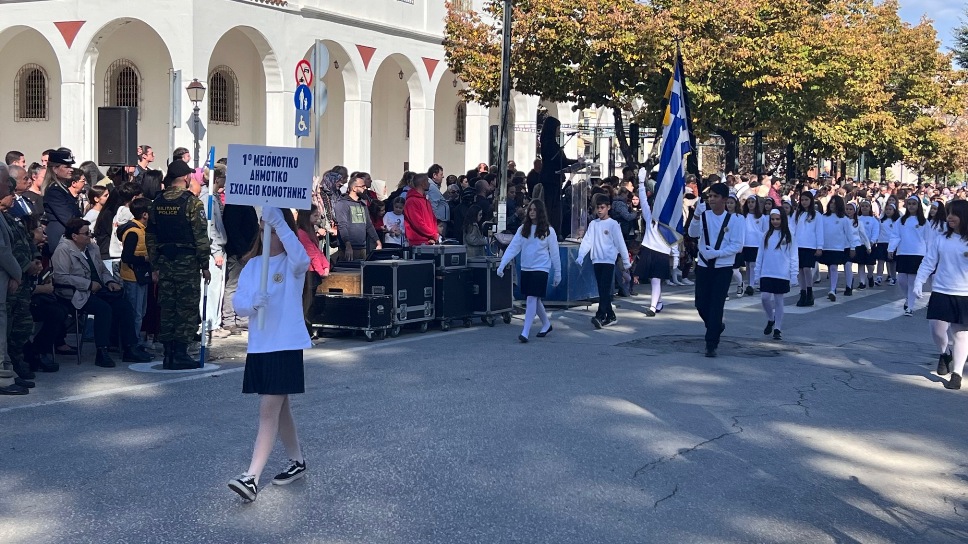 Kutlamalar kapsamında öğrenciler, dernekler ve askeri birlikler resmi geçit töreninde yer aldı. Gümülcine’de düzenlenen geçit törenine Türk azınlık ilkokulları, Gümülcine Celal Bayar Azınlık Ortaokulu – Lisesi ve Hayriye Medresesi öğrencileri de katıldı.