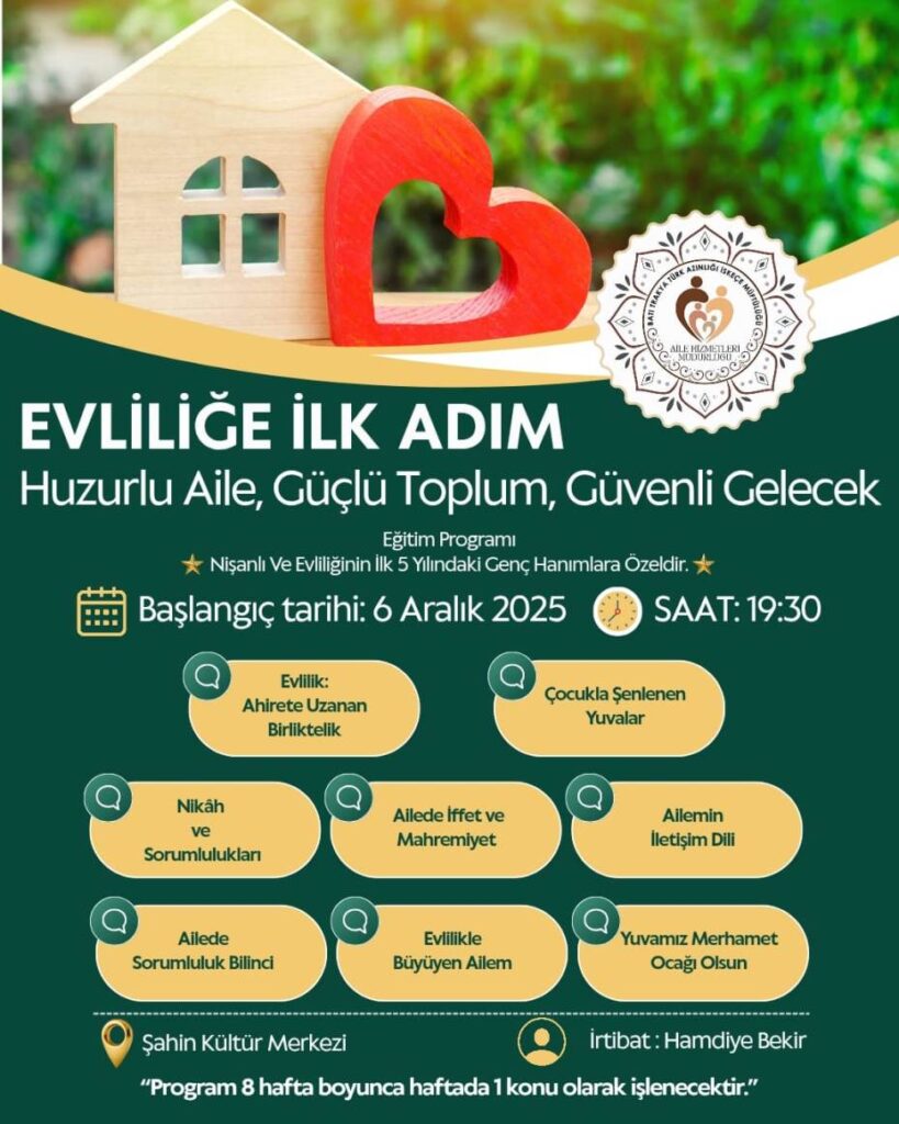 Katılımcılar, sekiz hafta boyunca evlilik yaşamının temel yapı taşlarını ele alan geniş ve uygulamalı bir eğitim programına katılacak. Süreç boyunca aile içi iletişim, görev bilinci, değerler sistemi ve merhamet temelli ilişkiler hem bilimsel hem de manevi açıdan işlenecek.