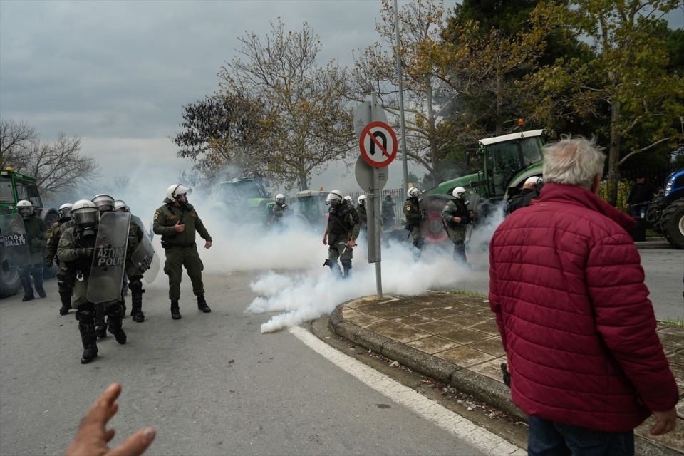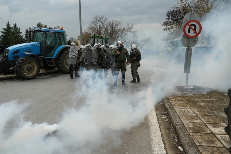 Selanik’te traktörleriyle eylem yapan çiftçilere polis müdahale etti. Selanik Uluslararası Havalimanı yakınlarındaki Prasina Fanaria kavşağında gösteri düzenleyen çiftçilere karşı polis ekipleri barikat kurdu. Polis gösteri sırasında bazı çiftçilere göz yaşartıcı gaz kullandı.