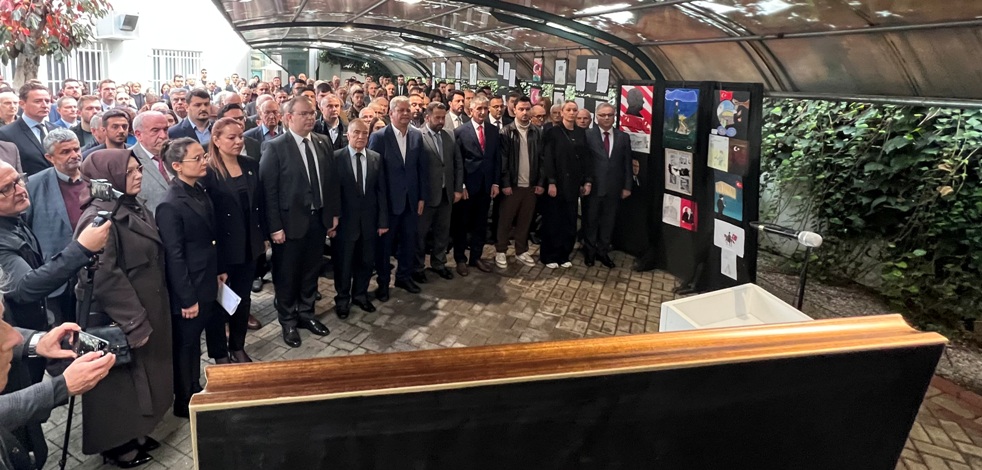 Başkonsolos konuşmasında şunları dile getirdi: “Değerli katılımcılar, Cumhuriyetimizin kurucusu büyük devlet adamı büyük komutan Gazi Mustafa Kemal Atatürk’ü aramızdan ayrılışının yıl dönümünde ülke olarak, saygı, şükranla özlemle anıyoruz. Bugünkü törenimiz ayrı bir unsur içeriyor. Genç kardeşlerimizin Atatürk’e, paşa dedelerine duydukları saygıyı, saf sevgiyi resme ve yazıya döktükleri çok değerli eserleri de bugün bu tören vesilesiyle sergiliyoruz. Bu çalışmaları bir süre daha Başkonsolosluğumuzdasergileyeceğiz. Bunu bir yarışma olarak yapmadık. Ortak duygularımızın ve minnetimizin en saf haliyle geleceğimiz olan çocukların ve gençlerin gözünden ve dilinden aktarılmasını, onların bize ışık tutmasını amaçladık.