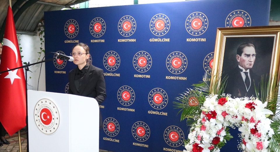Türkiye’nin Gümülcine Başkonsolosu Aykut Ünal yaptığı konuşmada, Türkiye Cumhuriyeti’nin kurucusu Mustafa Kemal Atatürk’ün yaşamından kesitlere yer verdi.