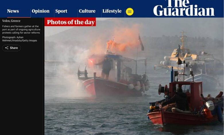 The Guardian, her gün dünya genelindeki haber ajansları ve medya kuruluşları tarafından servis edilen kareler arasından en çarpıcı fotoğrafları seçerek özel bir bölümde yayımlıyor. Ayhan Mehmet’in Volos Limanı’nda çektiği protesto anı da bu kapsamda günün en dikkat çeken görüntülerinden biri olarak değerlendirildi.
