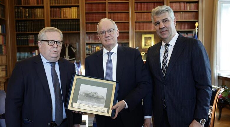 Doğu Makedonya Trakya (DMT) Bölge Başkanı Hristodulos Topsidis, Kavala İlinden Sorumlu Başkan Yardımcısı Theodoros Markopulos ile birlikte bugün (16 Aralık Salı) Cumhurbaşkanlığı Sarayında Cumhurbaşkanı Konstantinos Tasulas’ı ziyaret etti.