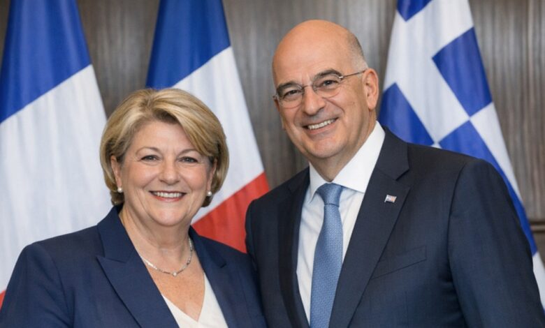 Atina’ya ziyarette bulunan Fransa Savunma Bakanı Catherine Vautrin ile Savunma Bakanı Nikos Dendias, Salamina Adası’nda demirli bulunan, Yunanistan’ın Fransa’dan satın aldığı “Kimon” isimli fırkateynde bir araya geldi.