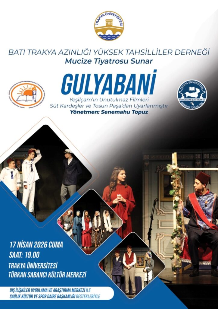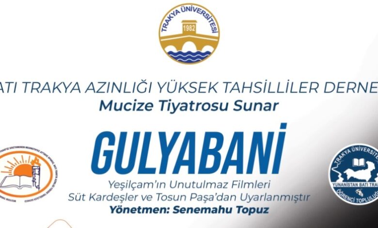 Edirne’de Trakya Üniversitesi ev sahipliğinde Batı Trakya Azınlığı Yüksek Tahsilliler Derneği (BTAYTD) bünyesindeki “Mucize Tiyatrosu” ekibi, “Gulyabani” adlı oyun sahneleyecek.